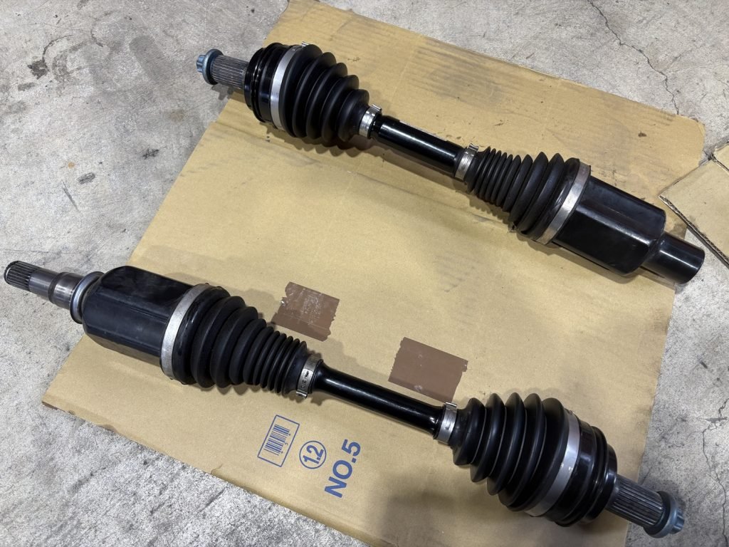 左右のシャフトに組み付けたタイミングで一枚。これを車両に組み付けていきます。